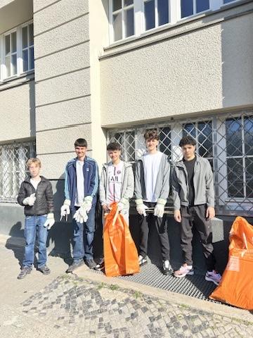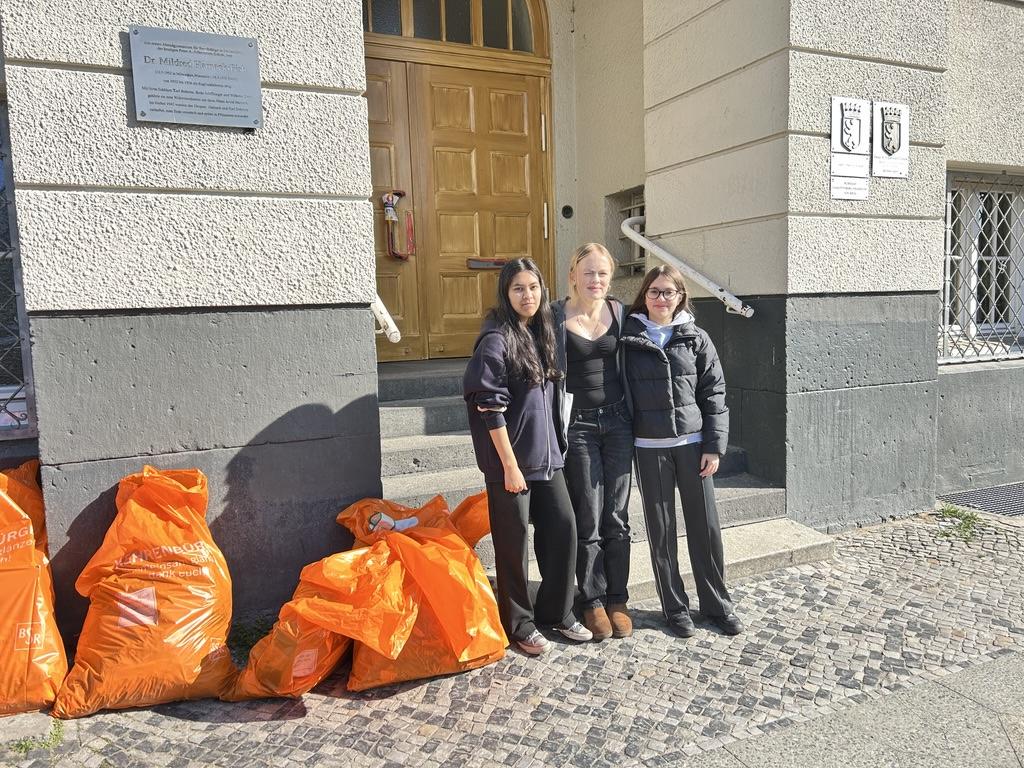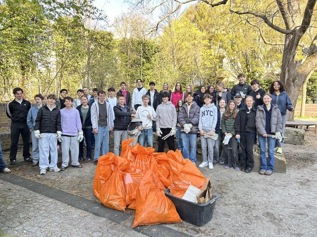 Im Rahmen der Aktion „Zusammen ist besser! Berlin räumt auf!“ haben die WPF 9 Geographiekurse zusammen mit Vertreter*innen des FEO Klimaparlaments das Schulumfeld aufgeräumt. Ausgestattet mit Handschuhen, Müllsäcken und weiterem Material – organisiert von Mia und Lysander über die BSR – wurde engagiert angepackt.