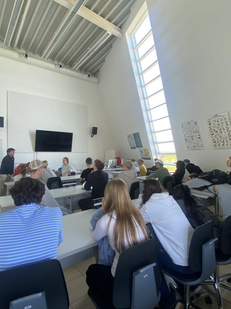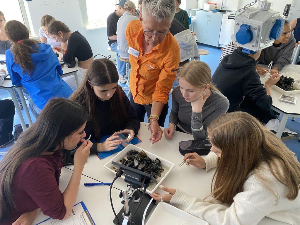 Das Programm war vielfältig: Im Erlebniszentrum Naturgewalten Sylt untersuchten die Schülerinnen und Schüler Wattbewohner unter dem Mikroskop, führten Experimente mit Miesmuscheln durch und besuchten die Ausstellung samt 360°-Kino. Eine Radtour mit Bestimmungsübungen zur Dünenflora auf den „Ellenbogen“, eine Wattführung und eine Kutterfahrt mit Seehundsichtung rundeten die erlebnisreichen Tage ab. Ein Highlight war die Führung im Alfred-Wegener-Institut, wo aktuelle Forschung zum Klimawandel und zum Schutz der Salzwiesen vorgestellt wurde.