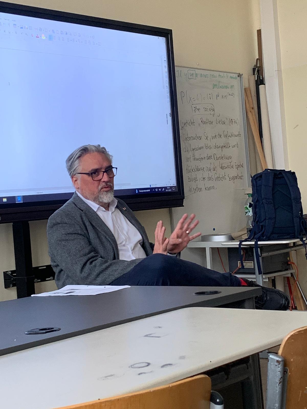 Der Besuch von Herrn Martin Lengemann, einem Journalisten bei WELT, machte unseren Grundkurs in der Politikwissenschaft mit Mr. McPhee am 18. November besonders spannend. Zu Beginn stellte er sich vor und erzählte, wer er ist und welche Erfahrungen er mitbringt. Schon da merkte man, dass er viel Wissen über politische und religiöse Konflikte hat. Er agiert nämlich als Korrespondent für christliche Angelegenheiten im Nahen Osten.