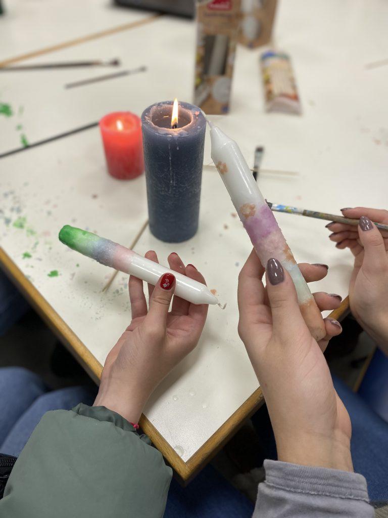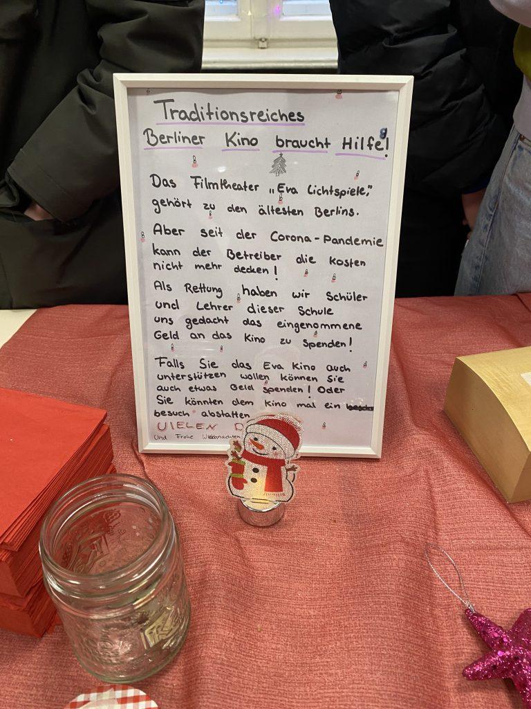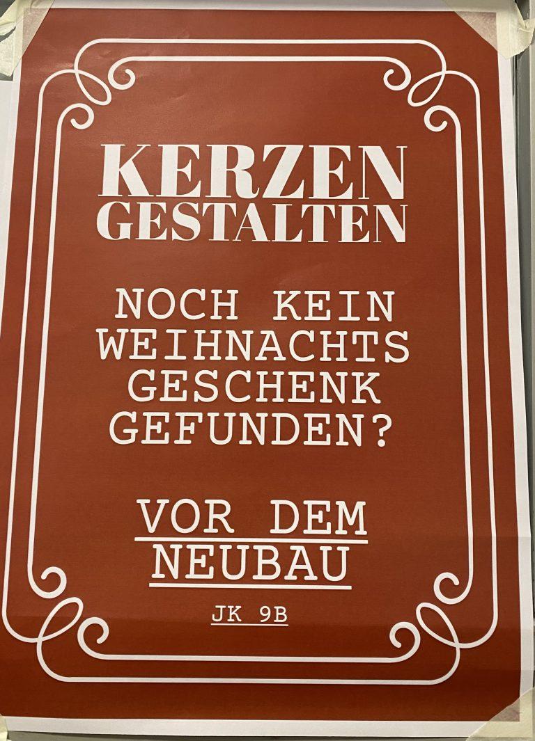 Unsere Schulgemeinschaft beging am Freitag, den 08.12., von 14 bis 16:30 Uhr einen wirklich schönen Adventsmarkt, der von den Schüler:innen mit ihren Lehrkräften, den Eltern sowie dem Förderverein der Schule gestaltet wurde. Viele Eltern, Großeltern, ja sogar ehemalige Schüler unserer Schule (bis zum Abi-Jahrgang 1955!) besuchten die vielen bunten Stände der Klassen und Kurse sowie des Regenbogen-Cafés.